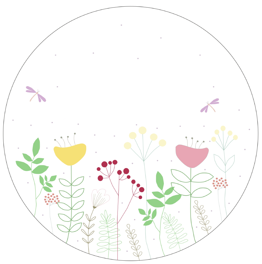 El diseño presenta elementos botánicos como hojas y flores en colores suaves, creando un bordado delicado y armónico. Te brinda libertad creativa para escribir lo que desees en la parte central del bordado, creando una pieza única y personalizada.